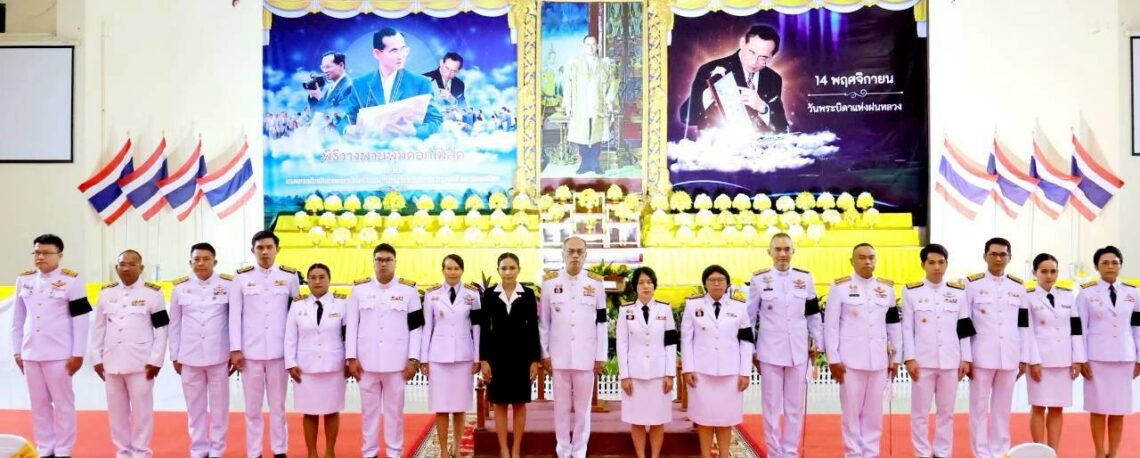 คณะผู้บริหารคณาจารย์และเจ้าหน้าที่ คณะเทคโนโลยีการเกษตร มหาวิทยาลัยราชภัฏมหาสารคาม เข้าร่วมพิธีวางพานพุ่ม