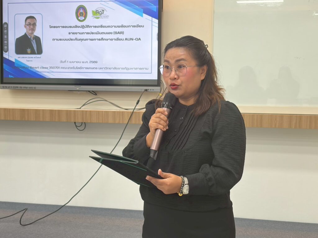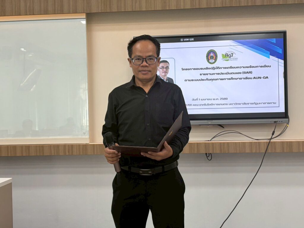 โครงการอบรมเชิงปฏิบัติการเตรียมความพร้อมการเขียนรายงานการประเมินตนเอง (SAR) ตามระบบประกันคุณภาพการศึกษาอาเซียน AUN-QA กิจกรรมที่ 1 อบรมเชิงปฏิบัติการเตรียมความพร้อมการเขียนรายงานการประเมินตนเอง (SAR) ตามระบบประกันคุณภาพการศึกษาอาเซียน AUN-QA วันที่ 1 เมษายน 2569 ณ ห้องเรียน Smart class 350701 คณะเทคโนโลยีการเกษตร มหาวิทยาลัยราชภัฏมหาสารคาม 24 เม.ย.,2026 agtใส่ความเห็น